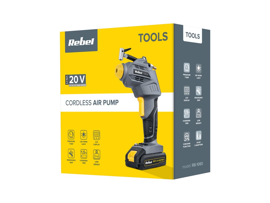 Felejtse el a kézi szivattyút, és cserélje le a Rebel Tools termékcsalád akkumulátoros kompresszorára. A mellékelt tartozékoknak köszönhetően a készülékkel gyorsan és könnyedén felfújhatja a kerékpár- és autókerekeket, valamint a játékokat és más felfújható tárgyakat, például matracokat, labdákat és gyermekmedencéket.