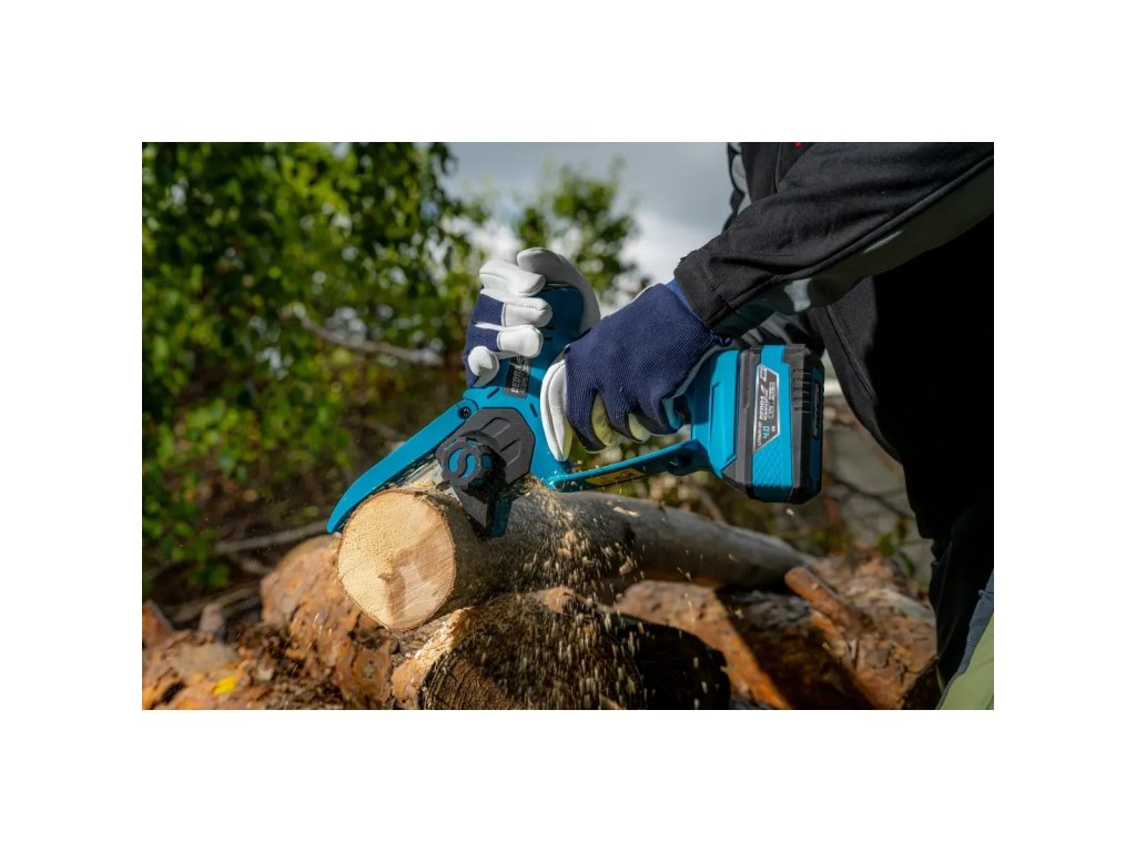 Könnyű, kicsi és praktikus, így nagyon kényelmes a használata.100 mm hosszú vezetőrúdjának köszönhetően akár 95 mm átmérőjű fát is vághat. A 3200 fordulat/perc fordulatszám és a 4,8 m/s láncsebesség gyors és hatékony favágást tükröz.
