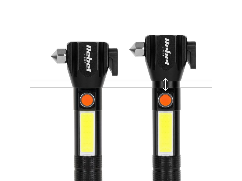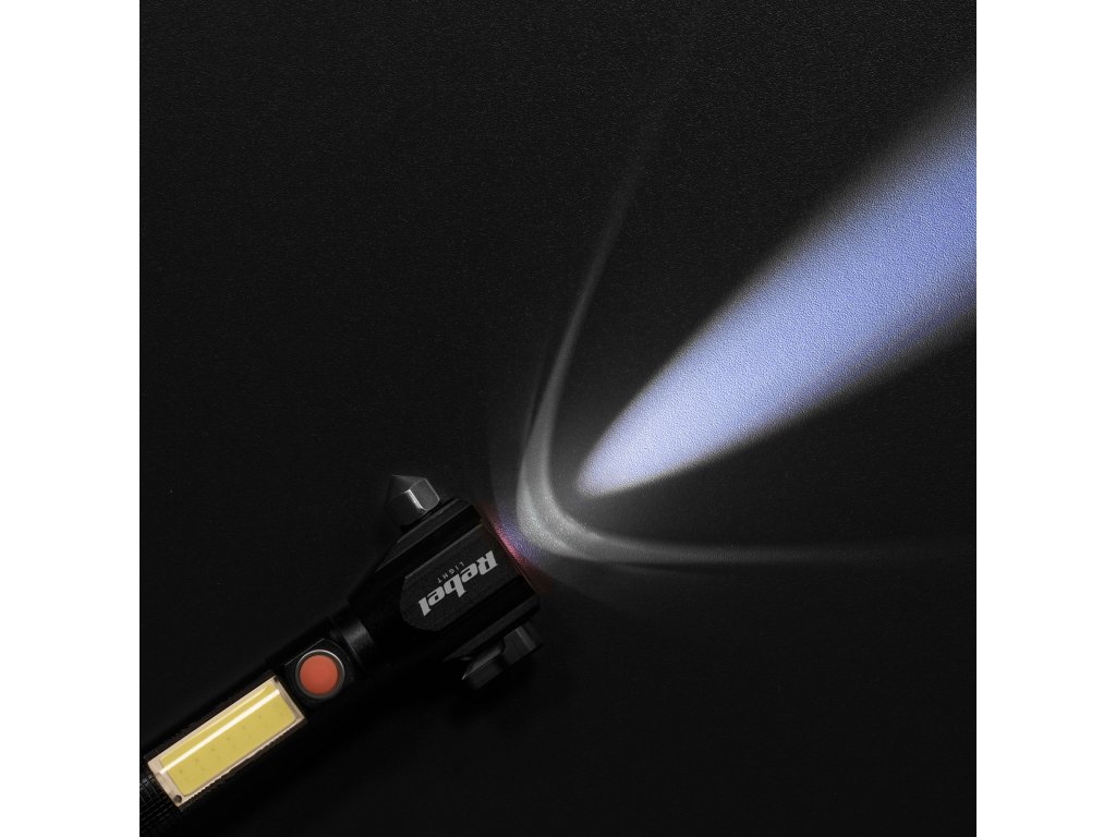 A Rebel URZ0941 zseblámpa egyik legfontosabb jellemzője a beépített üvegkalapács. Ennek köszönhetően meghibásodás vagy baleset esetén könnyedén betörheti az ablakot, és kiszabadíthatja magát a járműből. Ezenkívül a termék rendelkezik egy késsel, ami különösen fontos vészhelyzetekben. A felszerelést mágnes egészíti ki, amely megkönnyíti a zseblámpa fémfelületekre való rögzítését.