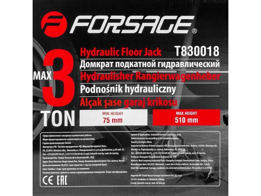 - Az emelési magasság 75- 510 mm lehetővé teszi a kényelmes munkát a legtöbb járművel.