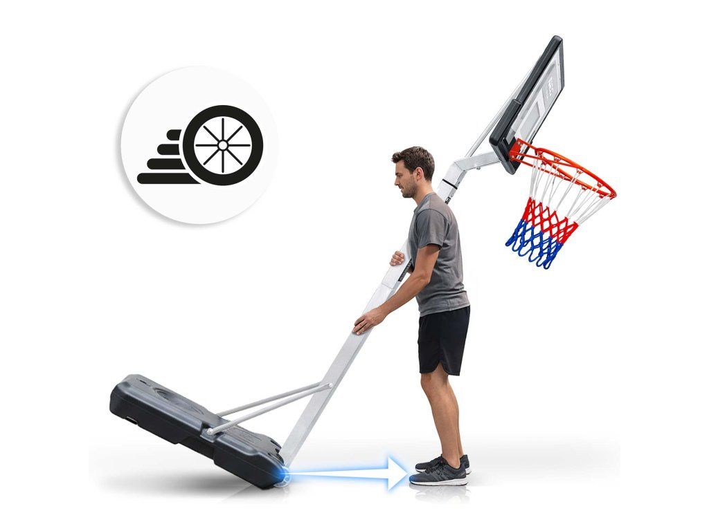 A talpban lévő két masszív szállítókereknek köszönhetően a kosár áthelyezése csak másodpercek kérdése. A pályáról a felhajtóra, a garázsból a lakótelepi pályára – emelés nélkül, különösebb erőfeszítés nélkül. Egyszerűen told arrébb, és már játszhatsz is.Ugrj magasabbra. Játssz jobban.