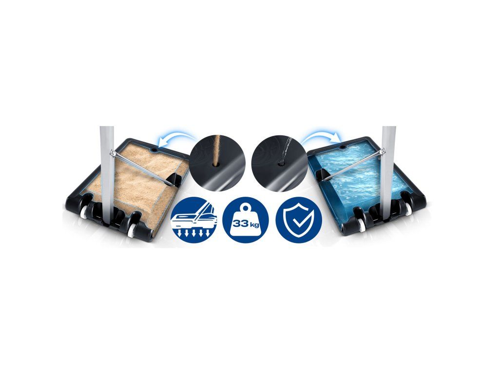 50 literes talp két kerékkel — töltsd fel vízzel vagy homokkal, és játssz bárhol. Told odébb és játsz – erőfeszítés nélkül.A játék nem hely. Hanem hozzáállás.