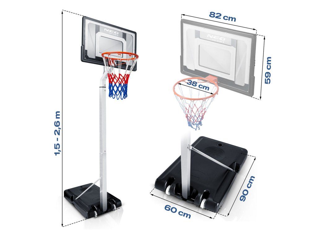 Állítható, szabadon álló, stabil, mobil kosárlabdapalánk 150–260 cm Neo-Sport NS-281