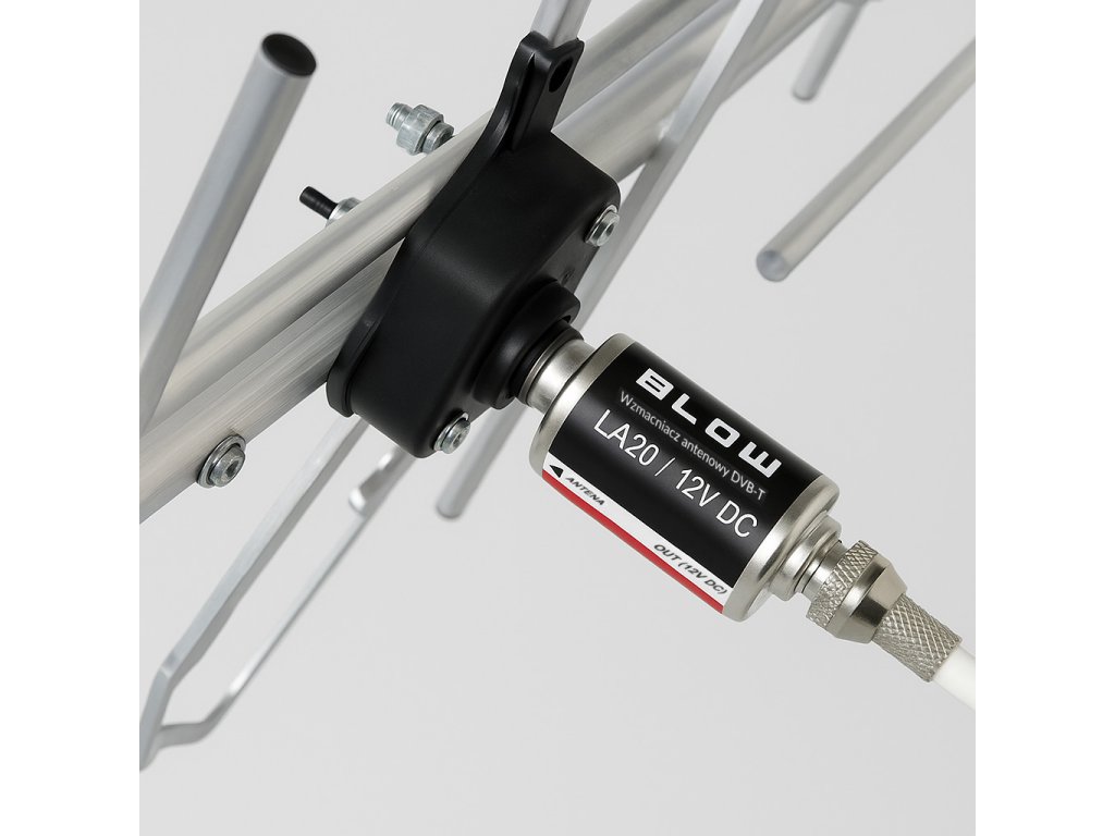 Kiváló minőségű DVB-T Blow antennaerősítő, amelyet a vevőegység koaxiális kábelen keresztül táplál. Öntött cinkből készült és nikkelezett ház.