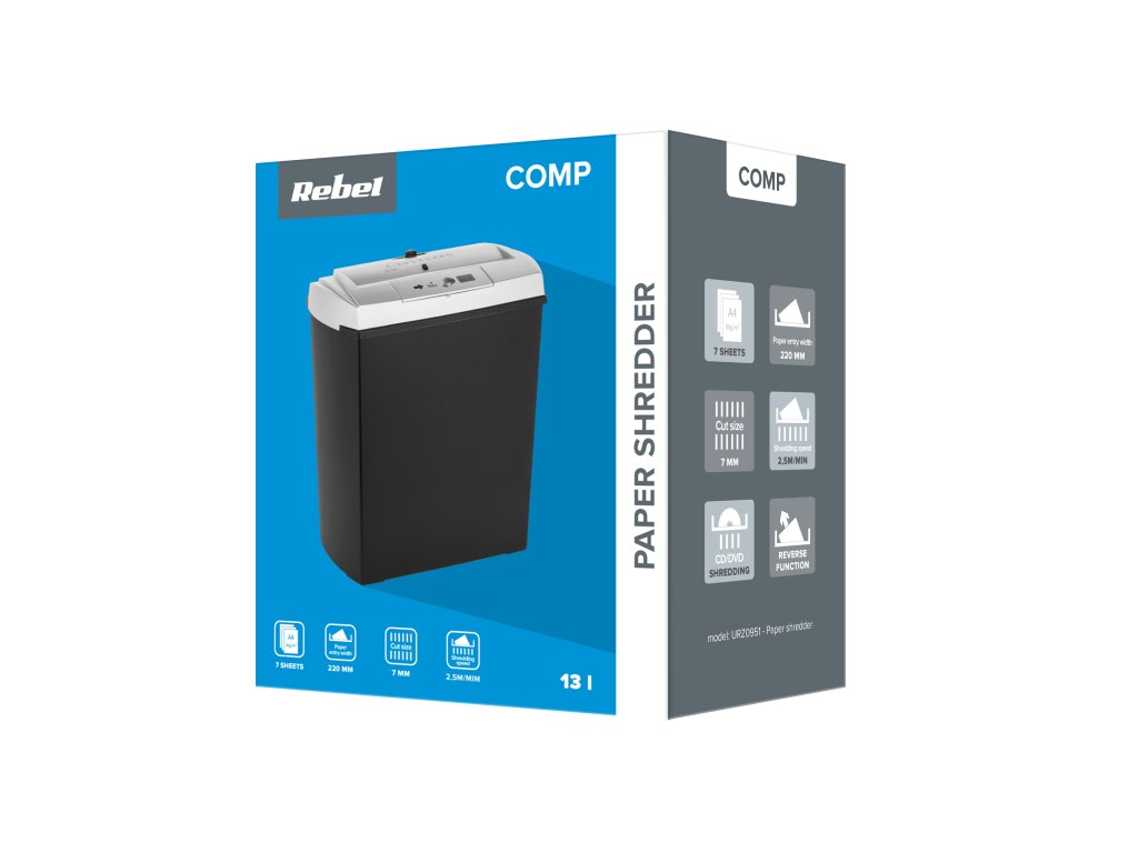 Az iratmegsemmisítő előnye a nagy, 13 literes tároló, amely lehetővé teszi, hogy nagy mennyiségű dokumentumot sem kell gyakran üríteni. Ezenkívül a levehető fej megkönnyíti a tároló ürítését.Felhasználási hely: háztartás/kisméretű, közepes méretű iroda Aprítandó anyag: papír, CD-k, DVD-k, hitelkártyák, kapcsok Egyszeri aprítás (A4 80 g/m2): 7 lap Vágás típusa: csíkok Vágási méret: 7 mm DIN biztonsági szint: P-1, T-1, O-1 Beömlőszélesség: 220 mm Beömlőnyílás-szélesség: 220 mm Tárolótartály: 13 l Átlagos aprítási sebesség: