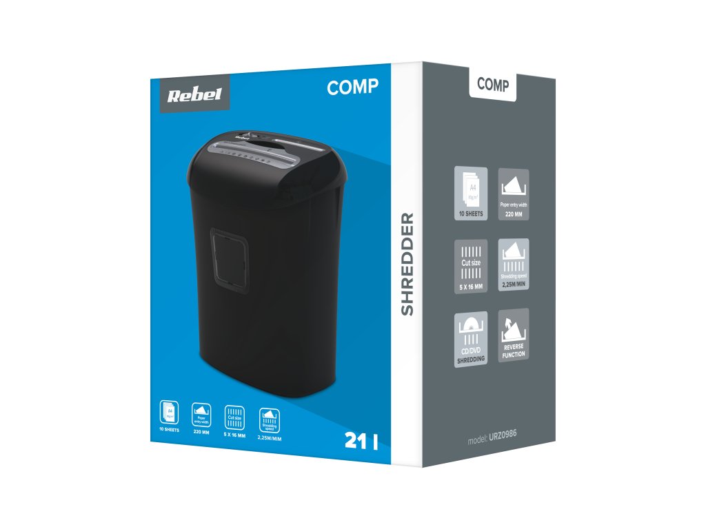 A Rebel URZ0986 nem csak egy papírmegsemmisítő. A készülék lehetővé teszi a kapcsokkal ellátott dokumentumok megsemmisítését, de a CD/DVD-k és a hitelkártyák megsemmisítését is. Ráadásul a sérült papírt, valamint a kártya- és lemezmaradványokat két külön tárolóban gyűjti össze, ami nagyban megkönnyíti a hulladékválogatást.