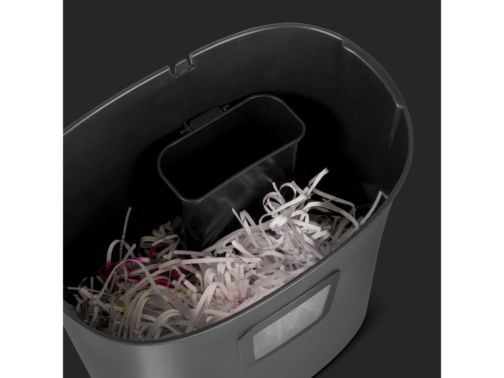 Az iratmegsemmisítő fontos jellemzője a 21 literes tartály, amelynek nagy kapacitása miatt nem kell gyakran ürítenie. Nagy kényelmet jelent a fogantyúval ellátott levehető fej, amely rendkívül egyszerűvé teszi a tartály kiürítését.