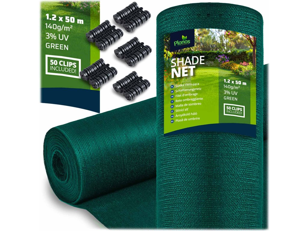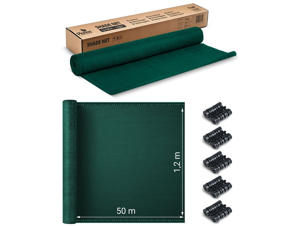 Árnyékoló háló 1,2x50m 140g/m2 + 50 zöld bilincs