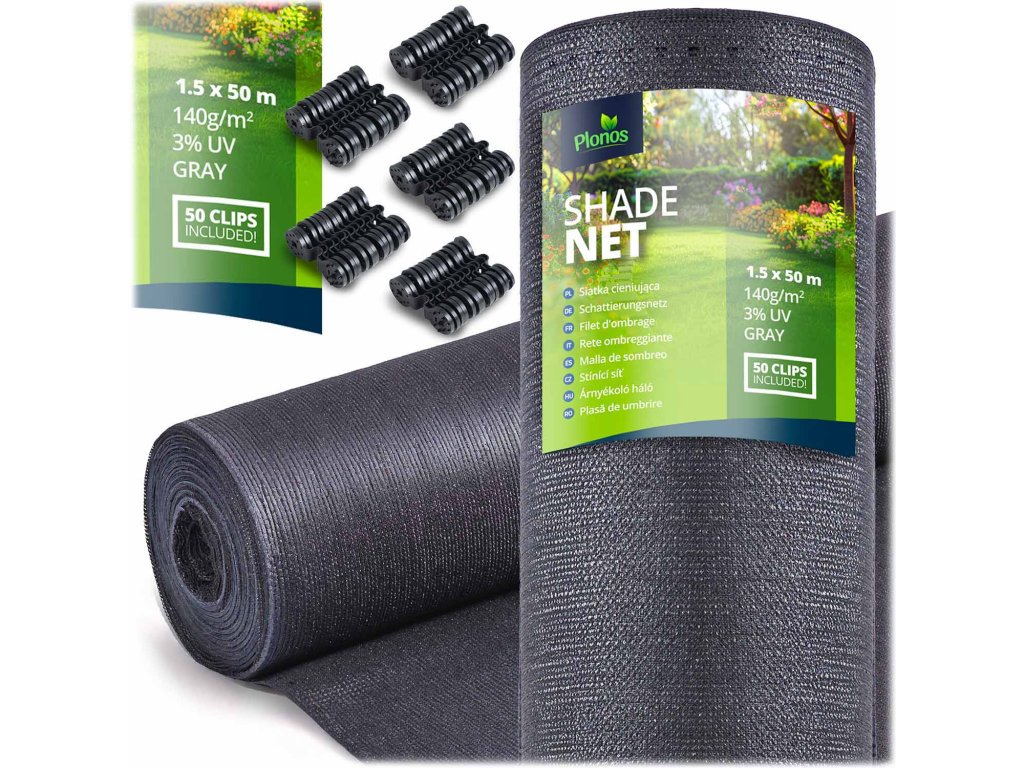 Árnyékoló háló 1,5x50m 140g/m2 + 50 bilincs szürke