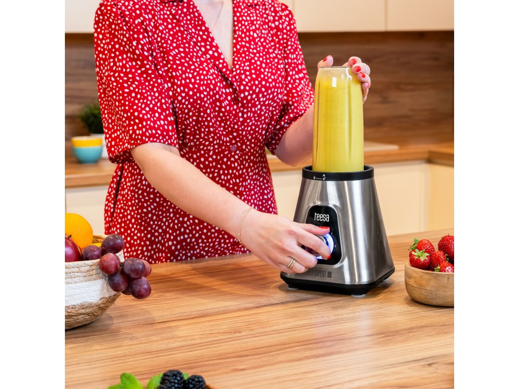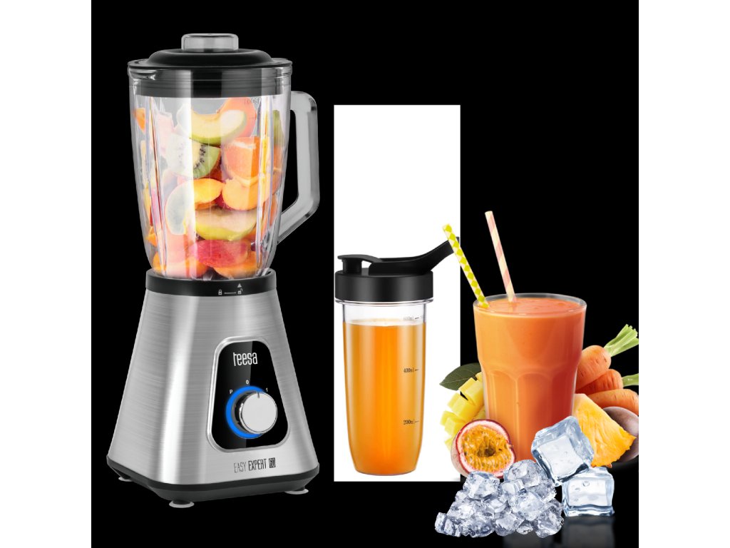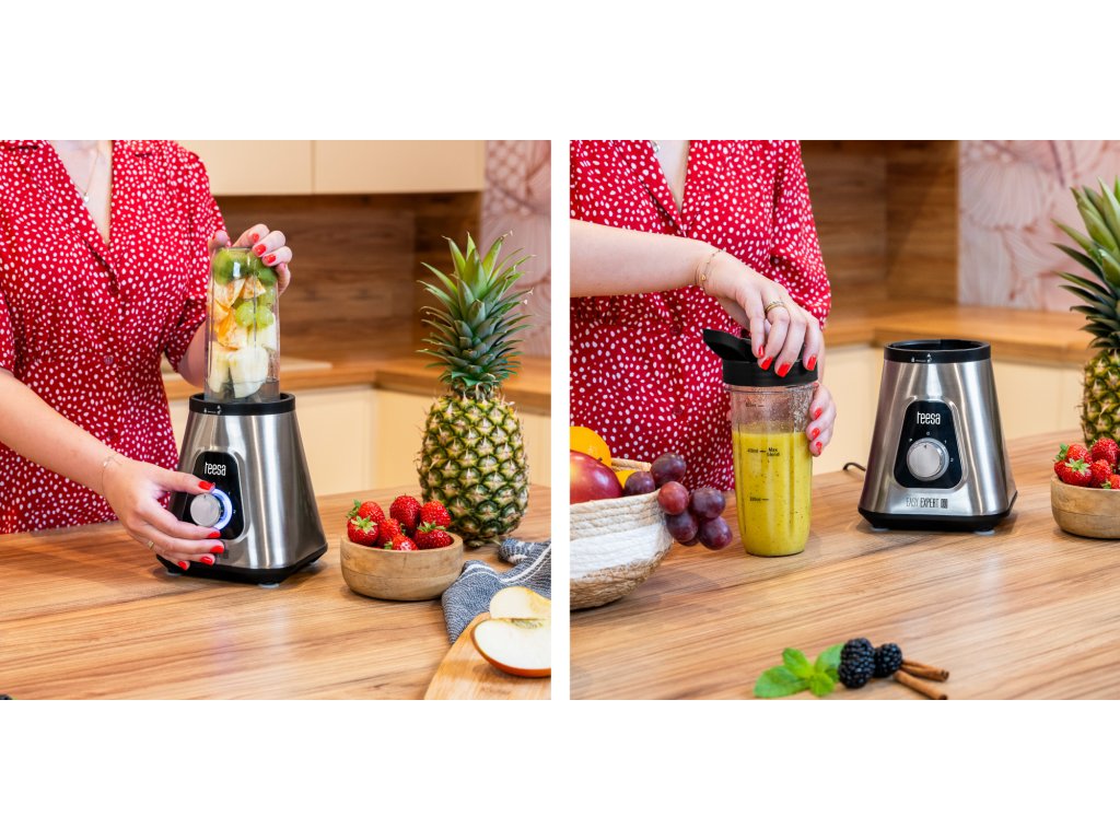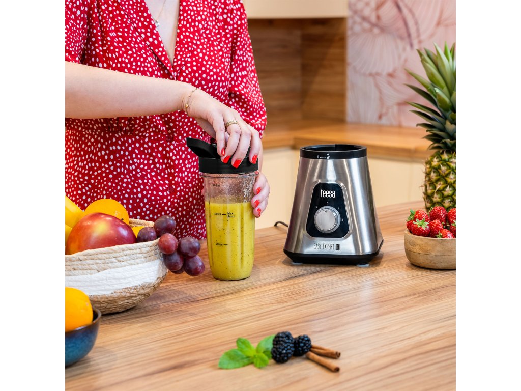 a Teesa csészés turmixgéphez tartozik egy tartós műanyagból készült kiegészítő palack, amely közvetlenül a pengékre csavarható, hogy a zöldségeket és gyümölcsöket közvetlenül a közegben turmixolhassa. Ez hasznos megoldás azok számára, akik egyszerűen csak szeretnék elkészíteni kedvenc koktéljaikat, hogy magukkal vihessék, pl.