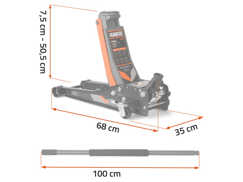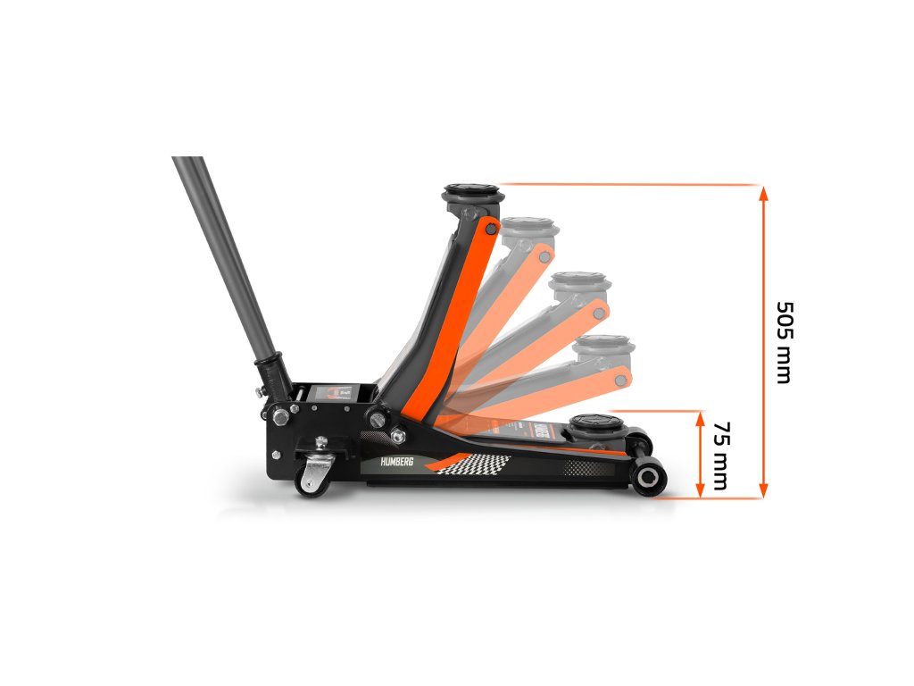 Emelési magasság 75 - 505 mm — alacsony autókhoz is megfelelő!