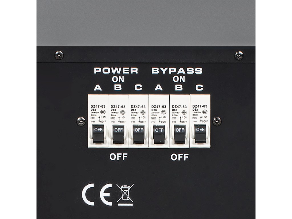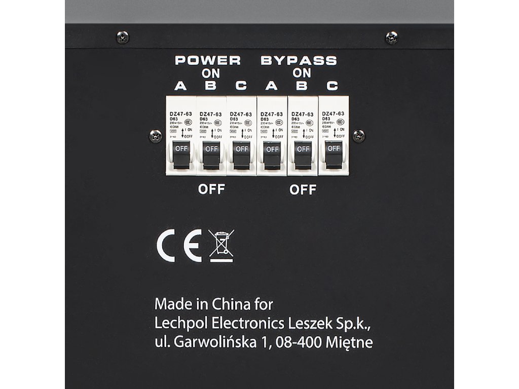Az eszköz rendelkezik egy "bypass" funkcióval is, azaz egy átkapcsolóval, amely megkerüli a stabilizátor működését, így lehetővé teszi annak elszigetelését, biztosítva az otthoni hálózat zavartalan áramellátását külső forrásból.