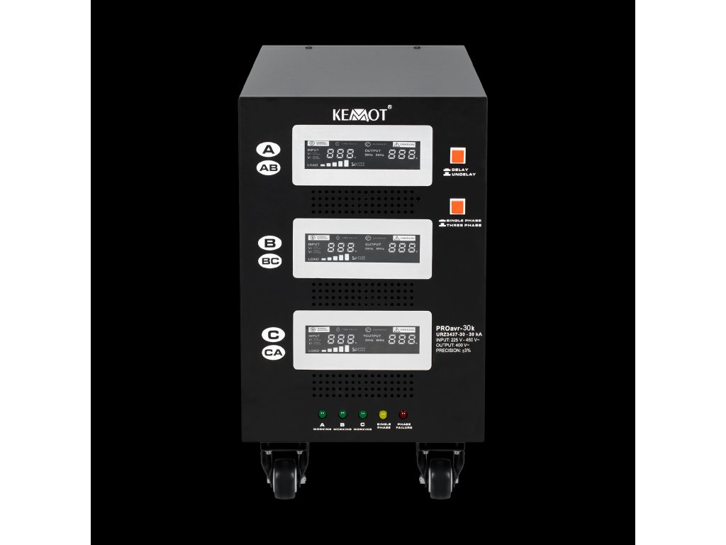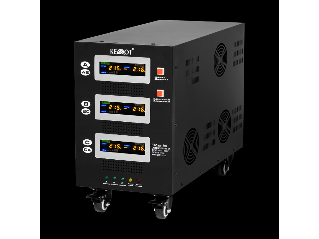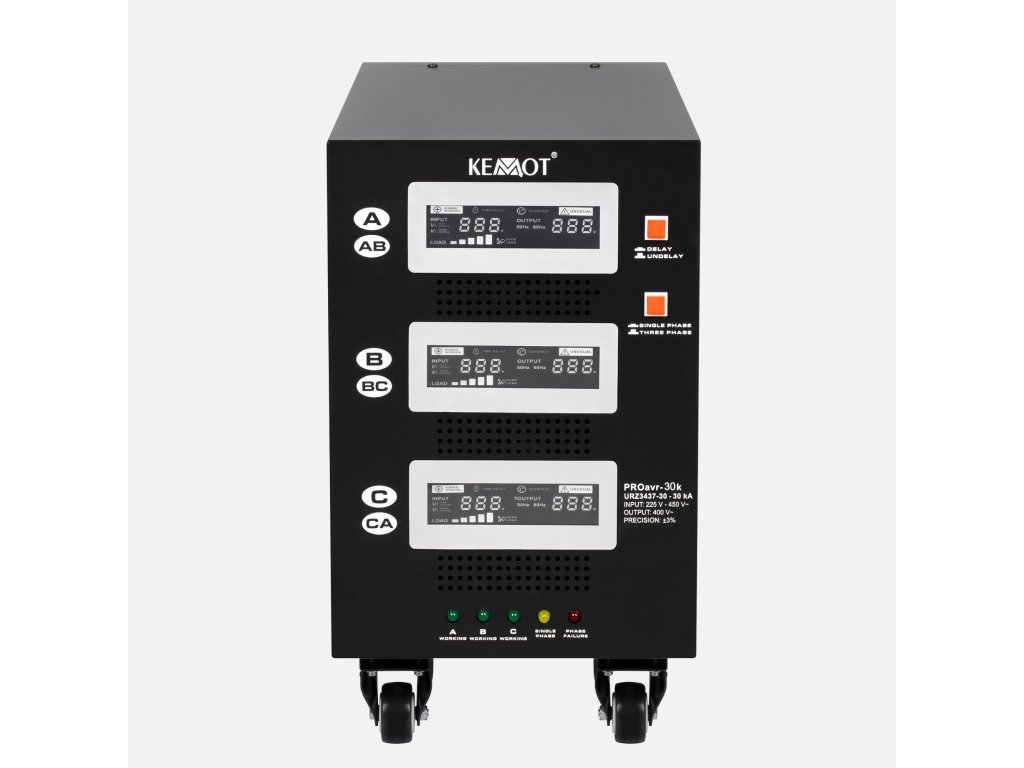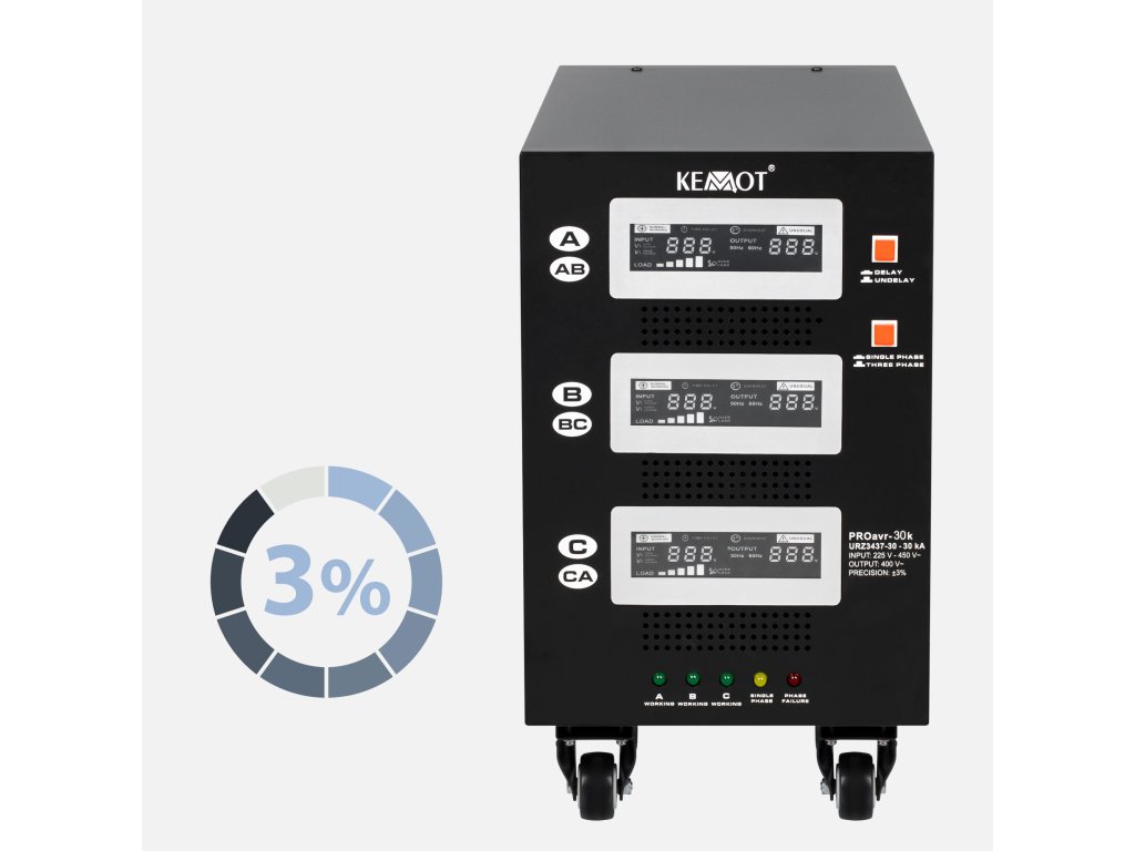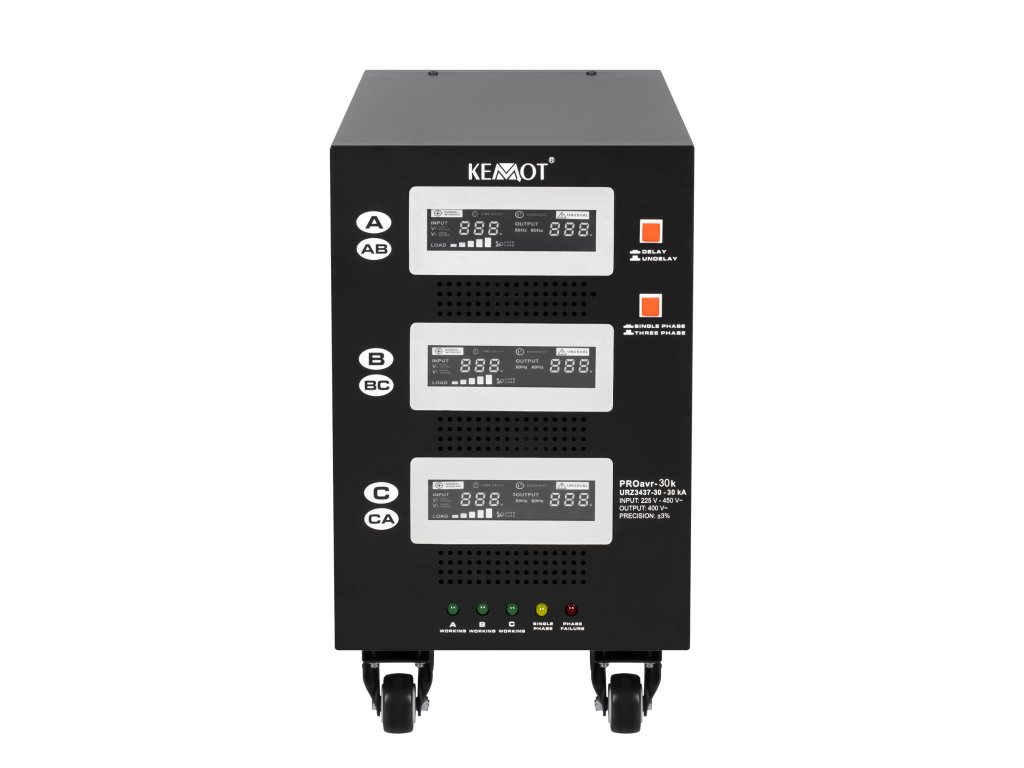 Egymás független fázisú üzemmódban minden fázis egymástól függetlenül működhet. Az elektromos hálózat terhelésétől és a kimenő feszültség ingadozásától függetlenül a KEMOT PROavr-30 stabilizátor 230 V ± 3% tartományban tartja azokat, ami lehetővé teszi az összes eszköz hatékony működését, beleértve azokat is, amelyek érzékenyek a hálózati feszültség minőségére. A szabályozás automatikus, biztosítva a kimeneti feszültség nagy pontosságát. Az egyik fázis hibás működése nincs hatással a többi működésére.