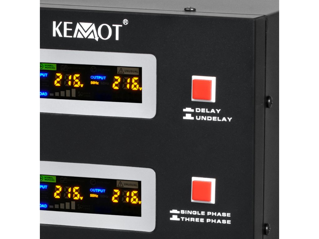 Ha feszültségstabilizátorra van szüksége olyan eszközökhöz, amelyek magas pillanatnyi indítóárammal rendelkeznek, válasszon modellt, amely késleltetett bekapcsolási DELAY funkcióval van ellátva. A KEMOT PROavr-30 fel van szerelve egy DELAY kapcsolási késleltetési gombbal, 6 és 180 másodperc közötti tartományban, amely csökkenti annak károsodásának kockázatát, ha a hozzá csatlakoztatott eszközök magas pillanatnyi indítóárammal rendelkeznek. A KEMOT PROavr-30 stabilizátornak emellett védelem van a túl magas és alacsony feszültség, túlterhelés, túlmelegedés és rövidzár ellen.