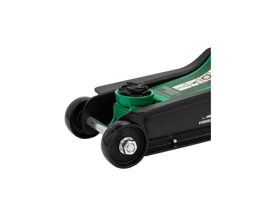 A megfelelően megtervezett kerekeknek köszönhetően ez az emelő könnyen elhelyezhető az autó bármely pontján. Felépítésük jelentősen megkönnyíti az eszköz manőverezését. Nagy átmérőjük révén könnyedén irányíthatod az emelőt még durva felületeken is.