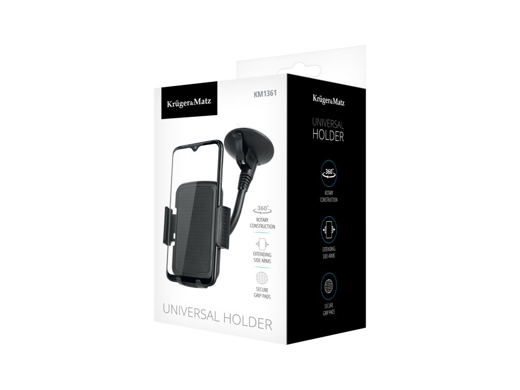 Gondoskodjon vezetés közbeni kényelméről, és válassza a Kruger&Matz univerzális autós telefontartóját. Értékelni fogja képességeit, különösen akkor, ha okostelefonját navigációs eszközként használja. A rugalmas karnak és a 360°-ban forgatható fejnek köszönhetően a megfelelő szögben helyezheti el mobilkészülékét, hogy a térkép jól olvasható legyen.
