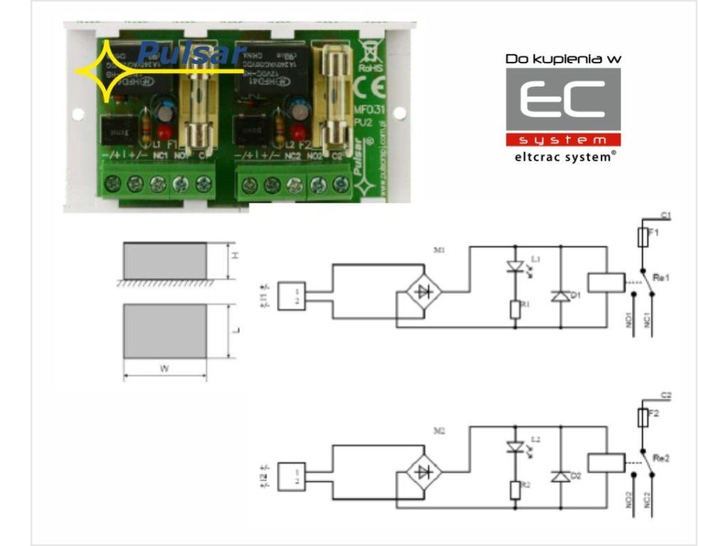 Relé modul AWZ 512 PU 2 a PULSAR cégtől alacsony feszültségű telepítésekhez készült. Az állapotok vezérlésére és jelzésére szolgál, pl. riasztórendszerekben, belépési ellenőrző rendszerekben. Nagy áramfelvételű eszközök vezérlésére használható az riasztórendszerek OC kimenetein keresztül. Továbbá biztosítja a jel- és tápegységek galvanikus elválasztását a modul kimeneteivel szemben.