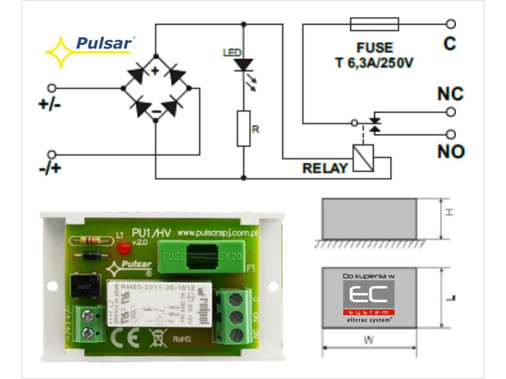 Relé modul AWZ 514 PU 1 HV a PULSAR cégtől alacsony feszültségű telepítésekhez készült. Az állapotok vezérlésére és jelzésére szolgál, pl. riasztórendszerekben, beléptető rendszerekben. Nagy áramfelvételű eszközök irányítására is alkalmazható riasztórendszerek OC kimenetein keresztül. Ezen kívül galvanikus szigetelést biztosít a jelek és a tápegységek között a modul kimenetéhez képest.