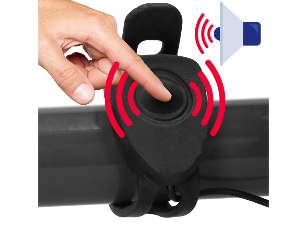 - Integrált hangjelző - 37 cm hosszú kábellel összekötött, saját rögzítőpánttal rendelkezik, a gomb megnyomásával magas frekvenciájú és intenzitású riasztóhangot generál