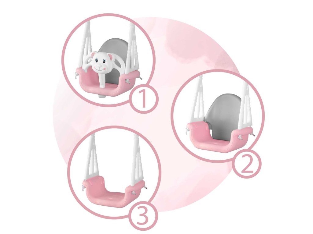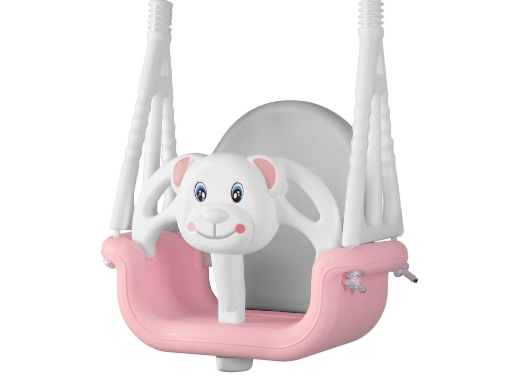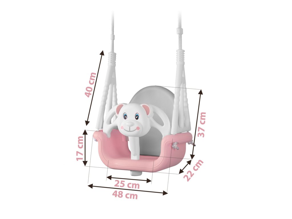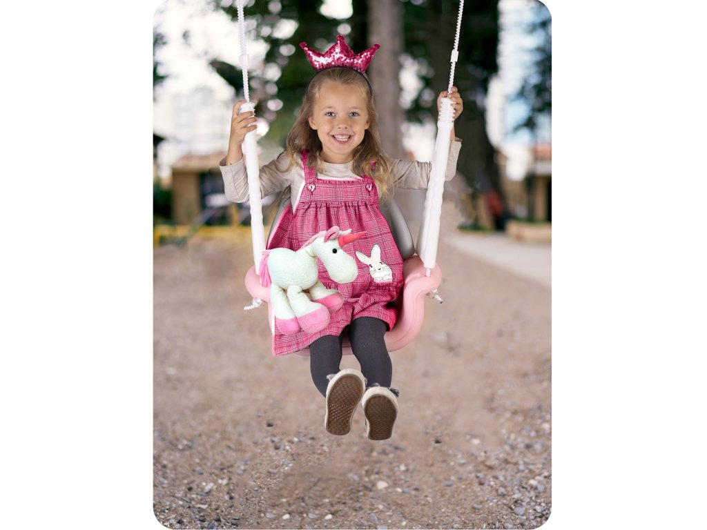 - Az akár 130 cm hosszúságúrögzített kötelek fémkapcsokkal állíthatóak, a köteleket ráadásul speciális műanyag védi, amely megvédi a gyermekek kezét az esetleges kopástól, és növeli a stabilitást hintázás közben.