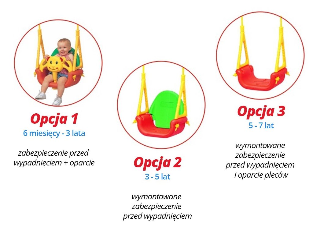 - erős kötelek akár 130 cm hosszúak, fémcsatokkal állíthatóak, a köteleket speciális műanyaggal rögzítették, hogy megvédjék a gyermek kezét az esetleges kopástól, és növeljék a stabilitást hintázáskor
