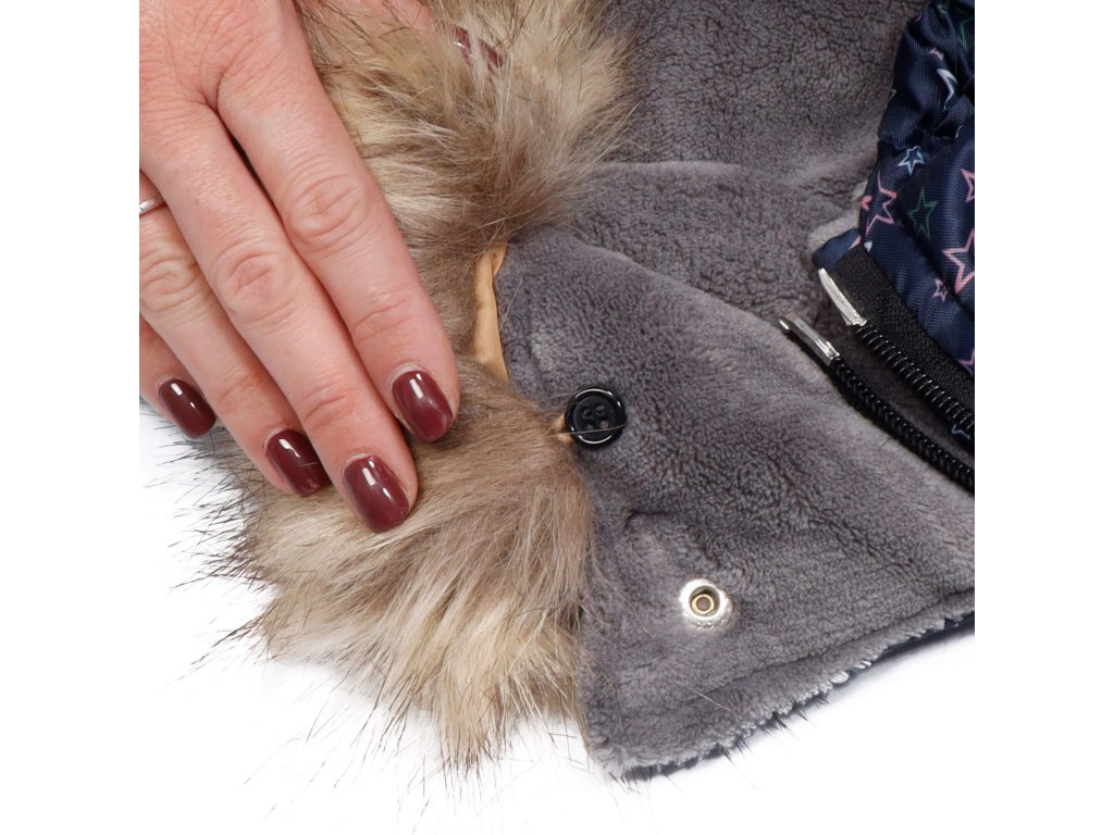 - Levehető szőrme gallér - fekete gombokkal rögzíthető a kapucnihoz