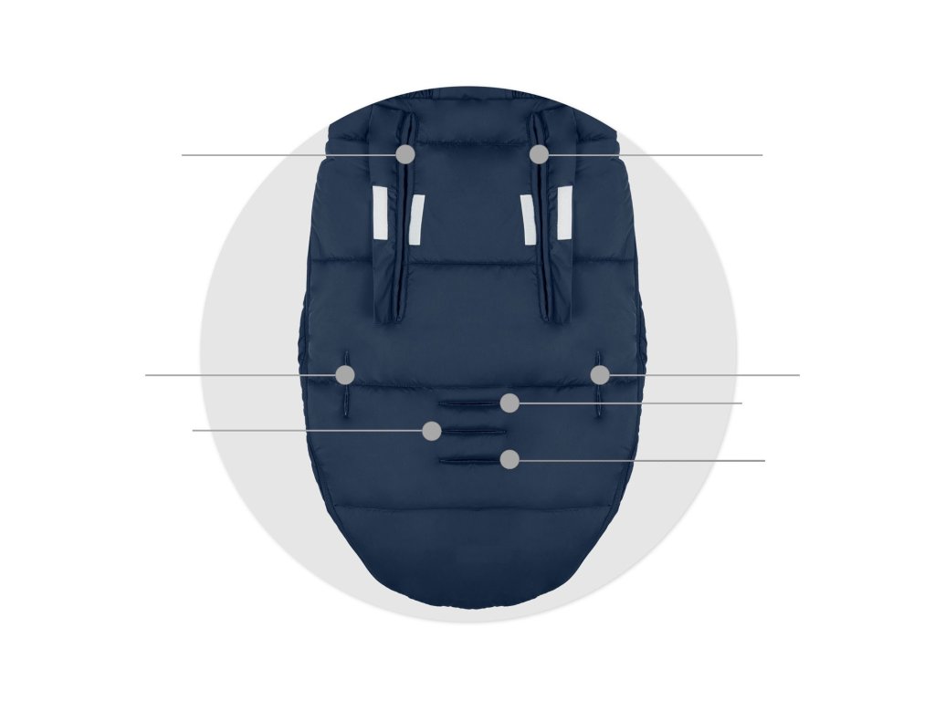 - rögzítőelem, amely megakadályozza, hogy a hálózsák elcsússzon a babakocsiban,