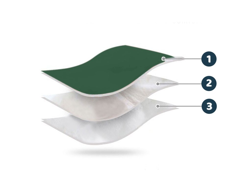 - A felső réteg teljes víz- és szélálló védelmet garantál.