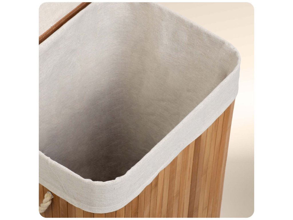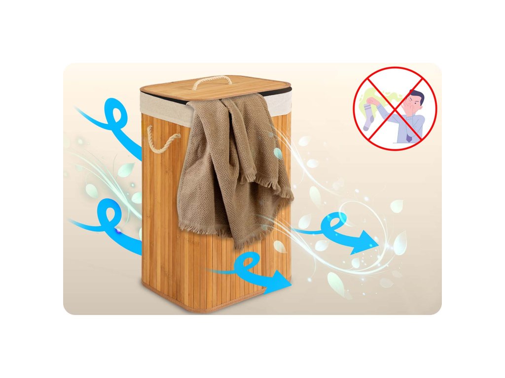A pamut és bambusz természetes szálai aktívan felszívják a nedvességet és semlegesítik a kellemetlen szagokat anélkül, hogy azok a kosár belsejében maradnának.