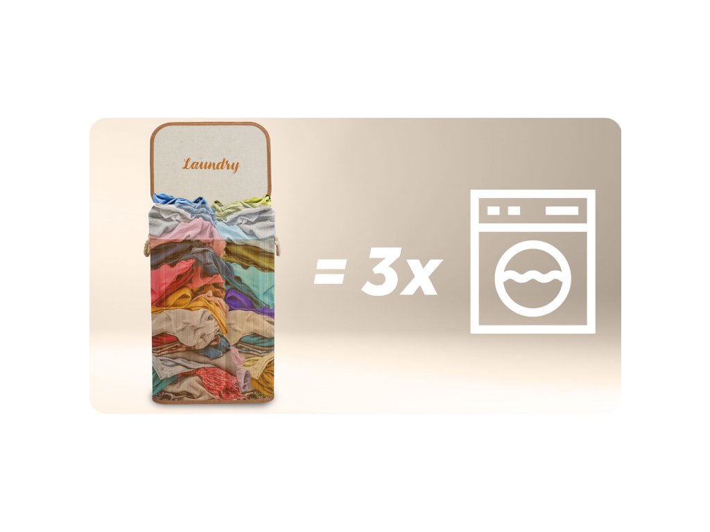 A 72 literes kosár három teljes mosógépnyi ruhát is elbír — extra tágas.