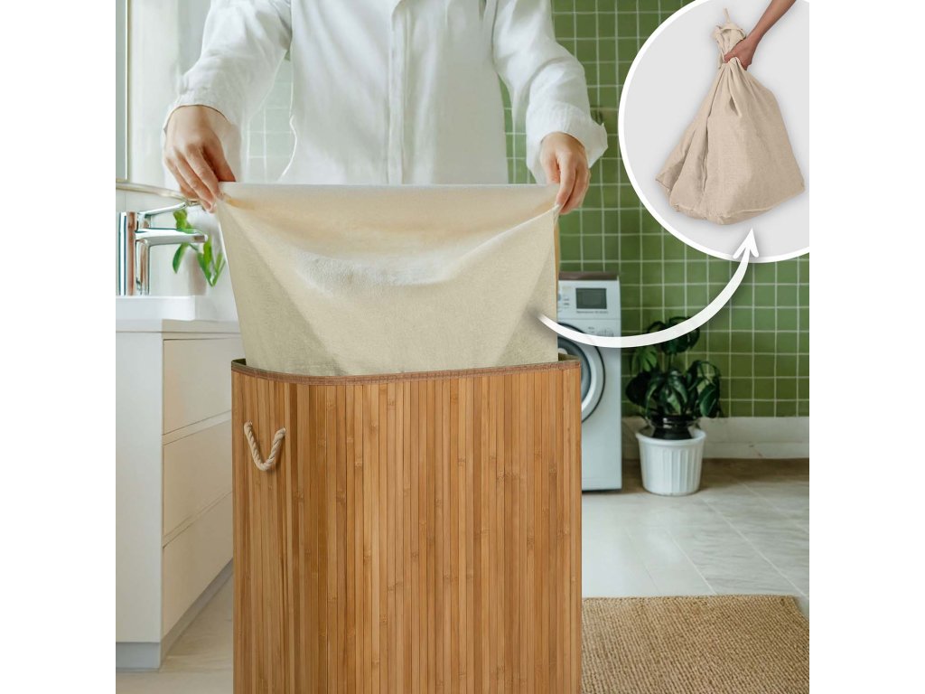 A természetes pamut betét praktikus mosózsákká alakítja a kosarat.Töltés után könnyen kivehető, összeköthető és áthelyezhető a mosógépbe – időt takarít meg, elkerüli a rendetlenséget és tisztaságot tart fenn.