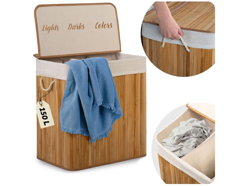 Háromrekeszes bambusz szennyeskosár 150 l