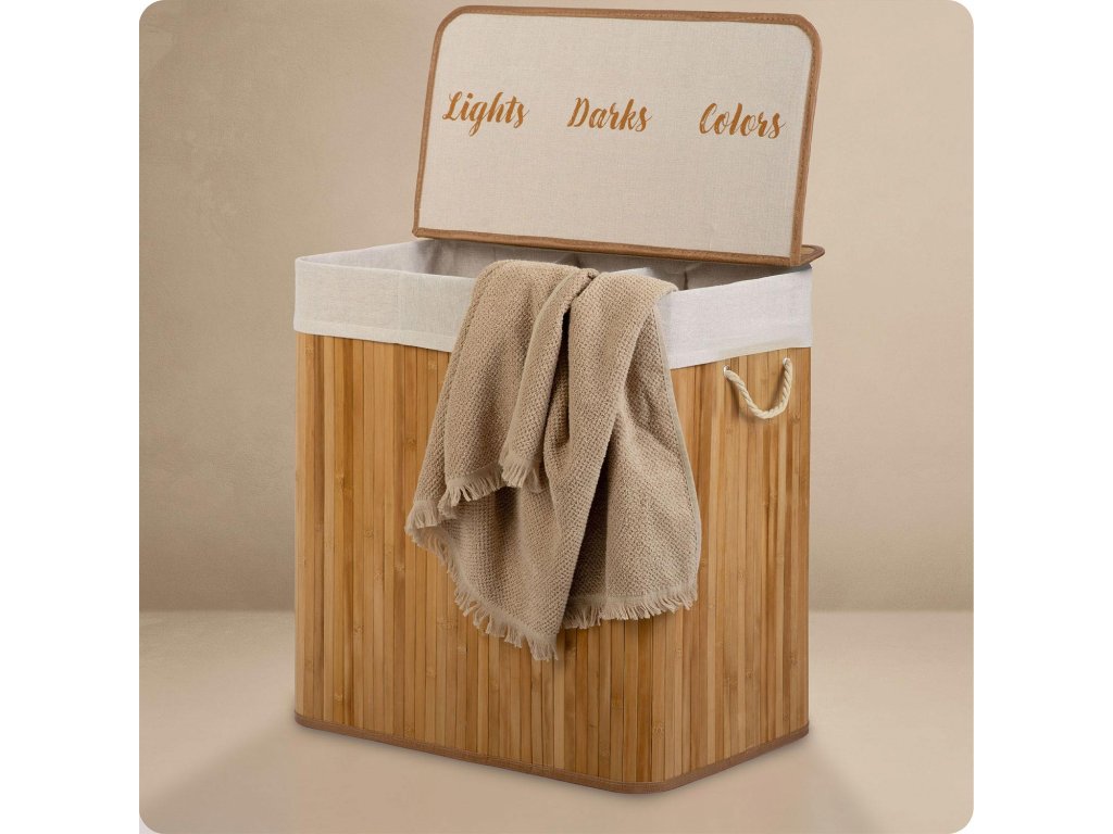 Búcsúzz el a rendetlenség és a piszkos ruhák padlón való heverésétől — vezess rendet és szortírozást a tágas és tartós bambusz kosárral.