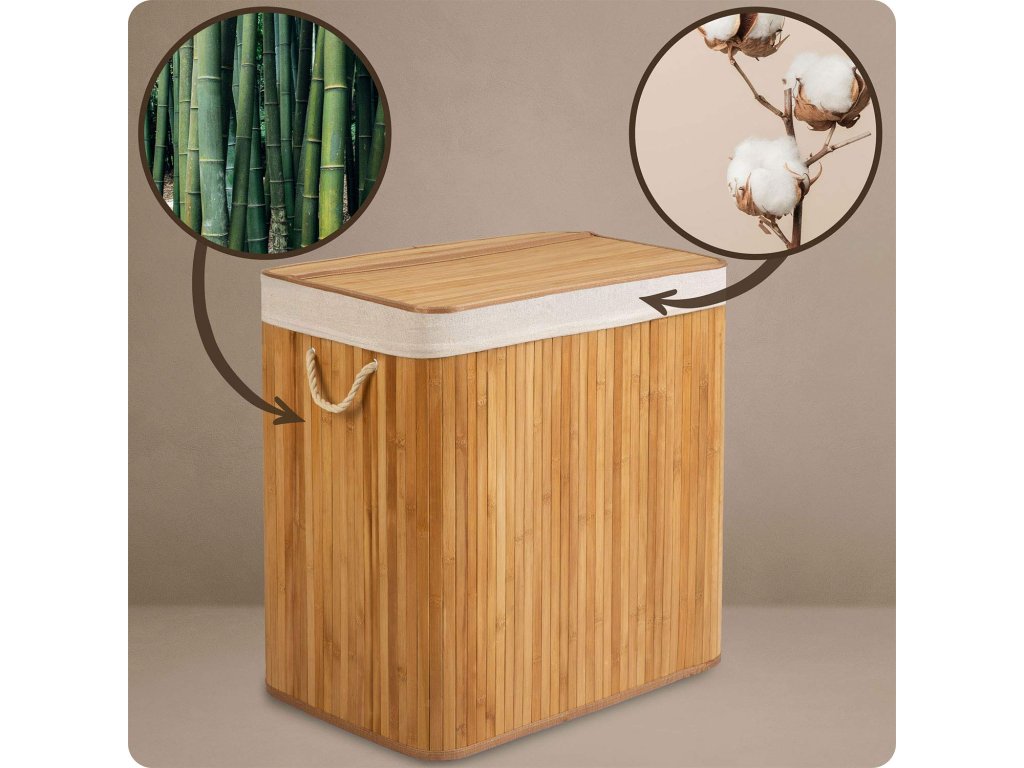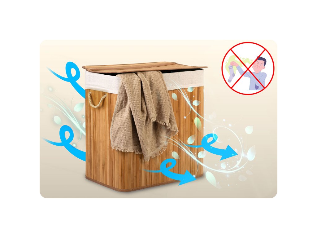 A pamut és bambusz természetes rostjai aktívan elnyelik a nedvességet és semlegesítik a kellemetlen szagokat, anélkül, hogy azt a kosár belsejében tartanák.