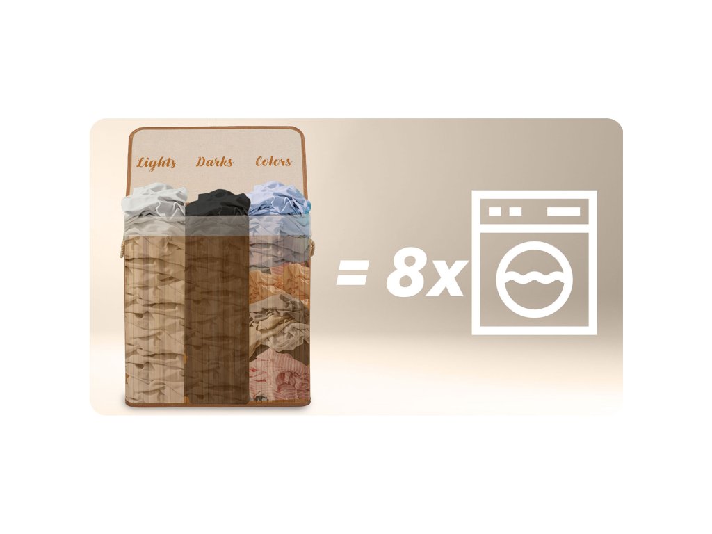 3 rekesz a ruhák szortírozásának és mosásának megkönnyítésére