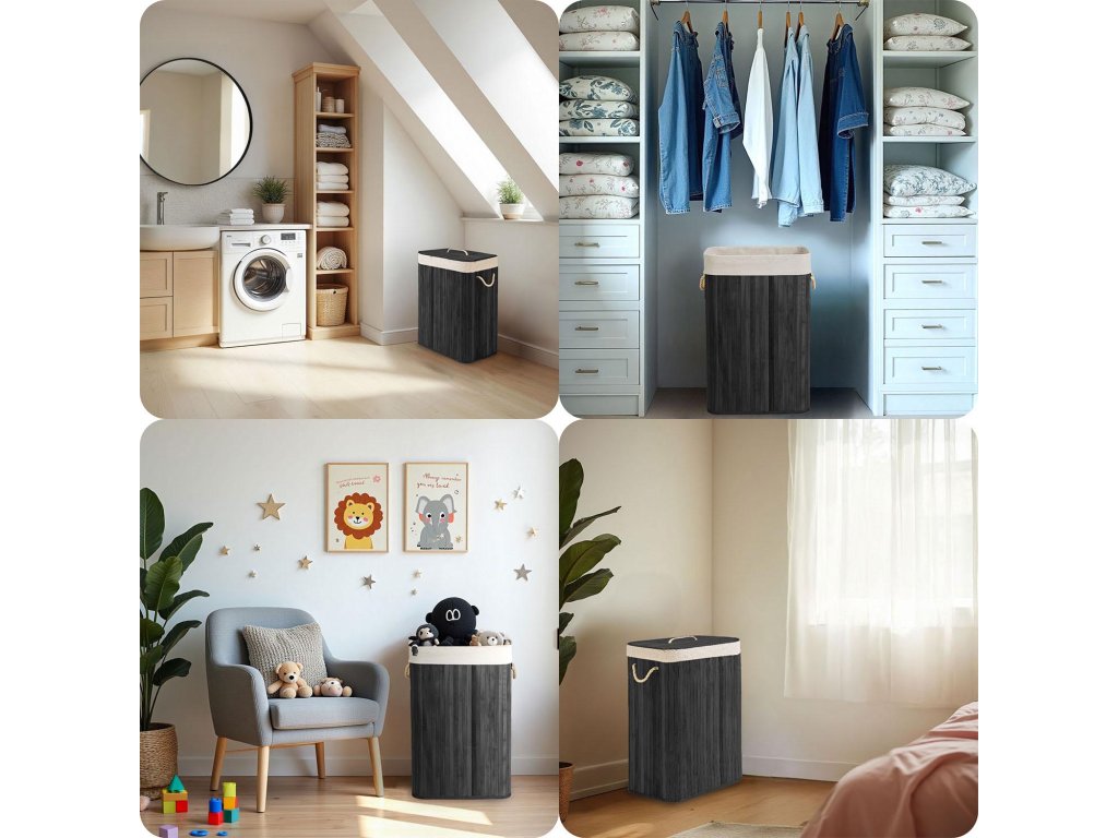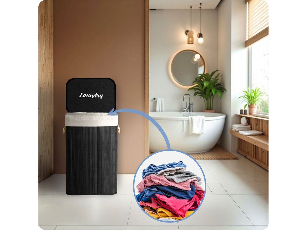 - Bambusz kosár: kiváló minőségű, természetes bambusz kivételes szilárdságot, nedvességállóságot és antibakteriális tulajdonságokat nyújt, miközben stílusos, környezetbarát belső térhez illik.