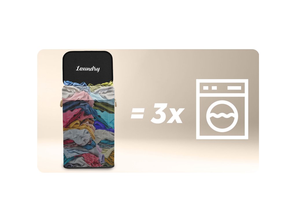 72 l-es kosár legfeljebb 3 teljes mosásra elegendő ruhát befogad — extra tágas.