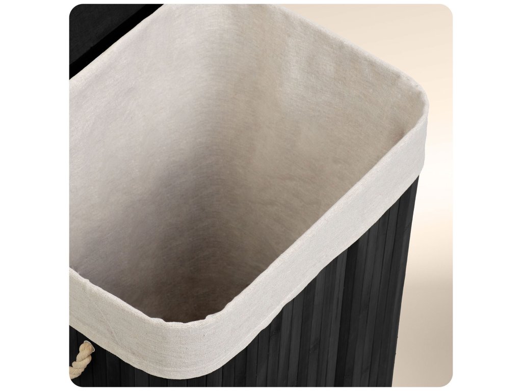A pamut és bambusz természetes rostjai aktívan elnyelik a nedvességet és semlegesítik a kellemetlen szagokat anélkül, hogy benn tartanák a kosár belsejében.