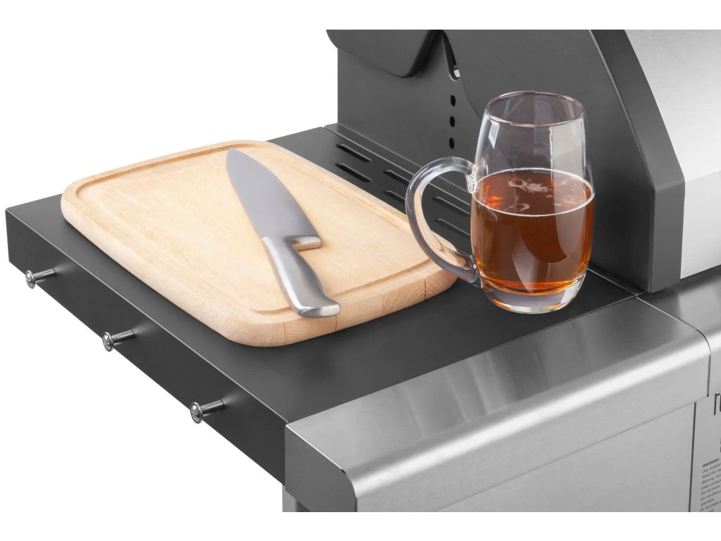 A Teesa BBQ 500 Master grillrácsa alatt 4 égő található, összesen 14,4 kW teljesítménnyel. De ez még nem minden! Az egyik munkalap egy további 3 kW-os égőt rejt, amely lehetővé teszi például a grillezett ételekhez való mártások elkészítését.