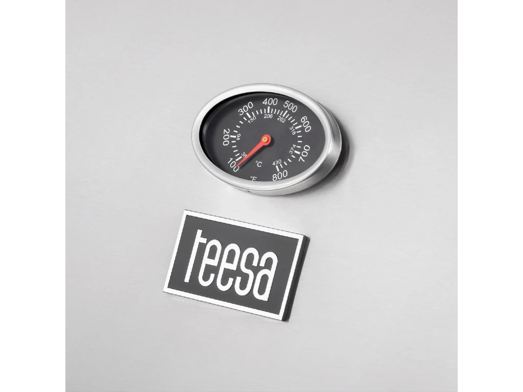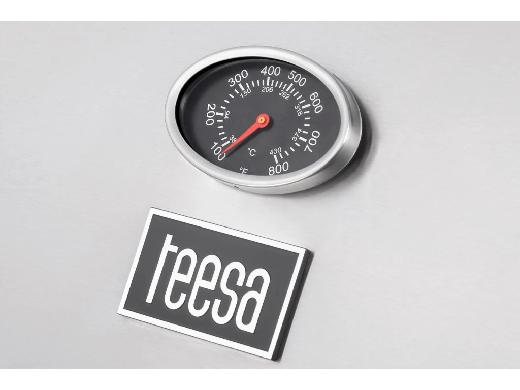 A Teesa BBQ 5000 Master nemcsak az égők teljesítményének szabályozását teszi lehetővé, hanem a hőmérséklet folyamatos ellenőrzését is. Mindezt a fedélbe épített hőmérőnek köszönhetően.