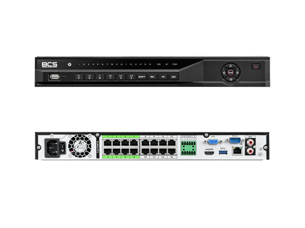 Modell BCS-L-NVR1602-A-4KE-16P(2) egy 16 csatornás IP regisztrátor. A regisztrátorhoz ingyenes program Smart PSS érhető el, amely lehetővé teszi az egész rendszer pontos kezelését. A regisztrátor nagy előnye a felhő opció P2P. A távoli megtekintést a mobil applikáció gDMSS/iDMSS biztosítja, amely elérhető Android és iOS rendszeren. A rögzített videók mentéséhez 2 darab SATA merevlemez csatlakoztatható, amelyek kapacitása 16 TB minden egyes. Ezen kívül a regisztrátor fel van szerelve 1 USB2.0 bemenettel, 1 USB 3.0 bemenettel, 1 x HDMI kimenettel (4K), 1 x VGA kimenettel.
