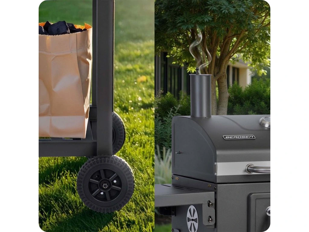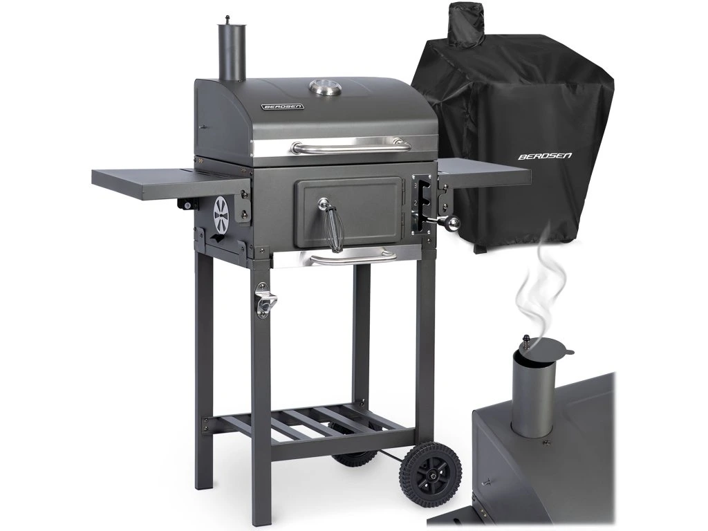 Grill węglowy BBQChef™ Berdsen: BD-892 Mocny, wszechstronny i niezawodny! ✅ Niezapomniane spotkania — zamień ogród w centrum towarzyskich spotkań! Nasz grill przyciąga wspólne chwile przy pysznym jedzeniu. ✅ Zostań kulinarnym mistrzem — poczuj się jak szef kuchni w swoim ogrodzie! Nasz grill pozwala na eksperymentowanie. ✅ Relaks w ogrodzie — zafunduj sobie najwyższy poziom odpoczynku! Dopracowane detale dla wygody. Pokrowiec 100% wodoodporny w zestawie! Główne cechy BBQChef™ Wysoka jakość wykonania. Solidny i wytrzymały 2-częściowy ruszt żeliwny o wymiarach 42 x 31,5 cm. Stal malowana proszkowo odporna na wysokie temperatury. Duże koła ułatwiają przenoszenie. Praktyczna dolna półka na węgiel. Łatwy w czyszczeniu. Łatwe kontrolowanie temperatury i wysokości paleniska. Dodatkowy ruszt do podgrzewania wykonany ze stali nierdzewnej. ✅ Regulowana wysokość paleniska pozwala na regulację temperatury i intensywności, z jaką potrawy są pieczone. Większa precyzja i więcej możliwości! Zdrowe i smakowite grillowanie w twoim ogrodzie! Dietetyczne: grillowanie to doskonały sposób na przygotowanie zdrowych i smakowitych posiłków. Dzięki temu, że tłuszcz wytapia się i spływa, grillowane potrawy są mniej kaloryczne i zdrowsze. Zdrowe: szybkie gotowanie na wysokiej temperaturze zachowuje więcej witamin i minerałów, a naturalne smaki składników wymagają mniej soli i tłuszczu. Smakowite: dodatkowo, reakcje chemiczne zachodzące podczas grillowania nadają potrawom niepowtarzalny, dymny aromat i wyjątkową teksturę, czyniąc je bardziej soczystymi i chrupiącymi. ✅ Grilluj zdrowo, ciesząc się pełnią smaków natury! Lepsza kontrola temperatury w grillu BBQChef™: ✅ Ruszt żeliwny: zapewnia równomierne rozprowadzanie ciepła, co przekłada się na równomierne grillowanie potraw. Żeliwo dobrze trzyma ciepło, co pozwala na lepsze zarumienienie mięsa. ✅ Wbudowany termometr: umożliwia dokładne monitorowanie temperatury wewnątrz grilla, co jest kluczowe dla precyzyjnego gotowania różnych potraw. ✅ Regulowane ujście powietrza: pozwala na kontrolowanie przepływu powietrza, a tym samym regulację temperatury wewnątrz grilla, co jest niezbędne przy długim grillowaniu. GRATIS pokrowiec na grill Berdsen BBQChef™ z miejscem na komin ✅ Wykonany z wysokiej jakości materiału 210D OXFORD. ✅ W 100% wodoodporny poliuretan (110G). ✅ Powłoka UV. ✅ Skutecznie zabezpieczy Twój grill ogrodowy przed deszczem, wiatrem i promieniowaniem słonecznym. Ruszt, na którym się upiecze! ✅ Żeliwne ruszty — złożone z dwóch części dla większej wygody i łatwości przy grillowaniu. Równomiernie rozprowadzają ciepło, dzięki czemu potrawy będą idealnie wypieczone. Zachowują smak potraw i ich właściwości. ✅ Dodatkowy ruszt ze stali nierdzewnej do podgrzewania — zachowuje temperaturę już upieczonych potraw na dłużej. Grilluj na luzie – prosto, smacznie i bez wysiłku! ✅ Nasz grill to mistrz prostoty i wygody – stabilny, równomiernie grzeje i działa intuicyjnie, więc grillowanie to czysta przyjemność! Zero stresu, tylko smak i dobra zabawa. ✅ A do tego ma wbudowany otwieracz do napojów, bo wiadomo – zimny napój w ręku to podstawa. Styl, wygoda i pełen chill przy grillu! BBQChef™ został wyposażony w szereg udogodnień: szuflada na popiół, regulacja dopływu powietrza, półki boczne, ruszt żeliwny, dwuczęściowy, ruszt ze stali nierdzewnej, pokrywa z kominem, termometr, drzwiczki do dokładania do paleniska, uchwyt/otwieracz do piwa, praktyczne kółka, uchwyt regulujący wysokość paleniska. ✅ Grillowanie z BBQChef™ marki Berdsen to czysta przyjemność. Dzięki funkcjonalnemu i stylowemu designowi ty odpoczywasz, a jedzenie robi się samo! DANE TECHNICZNE: materiał: stal, kolor: antracyt, wymiary całkowite: 110 x 96 x 35 cm, rozmiar rusztów żeliwnych: 42 x 31,5 cm, rozmiar rusztu do podgrzewania: 46 x 10,5 cm, waga grilla: 17,5 kg, wysokość grillowania: 81 cm, 2 duże kółka jezdne, wbudowany termometr, komin z regulowaną przysłoną, szuflada na popiół, drzwiczki dające dostęp do paleniska.Kiegészítő paraméterek