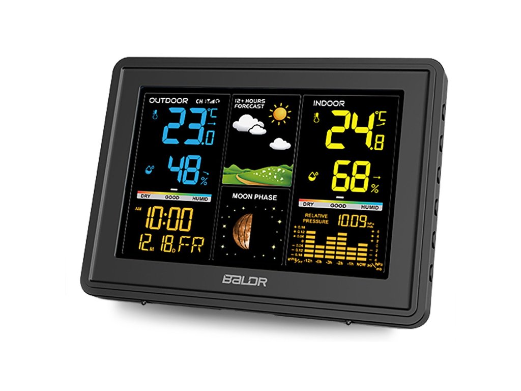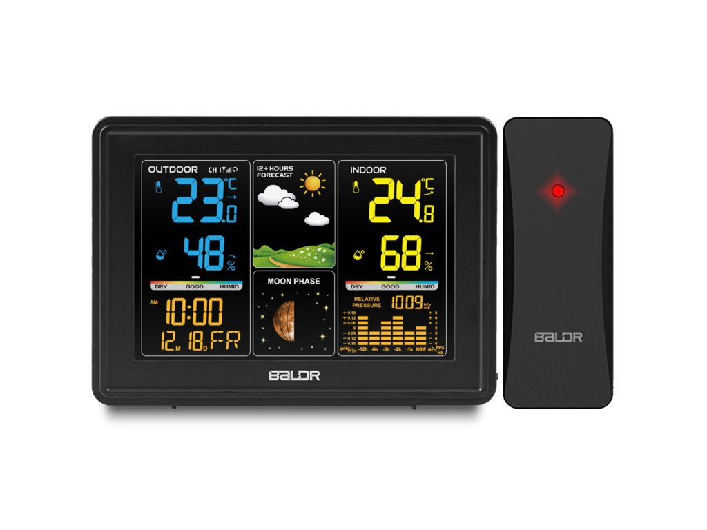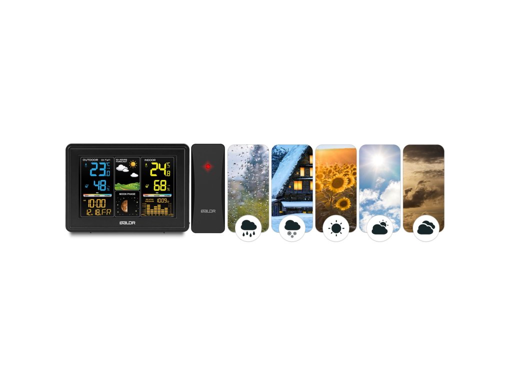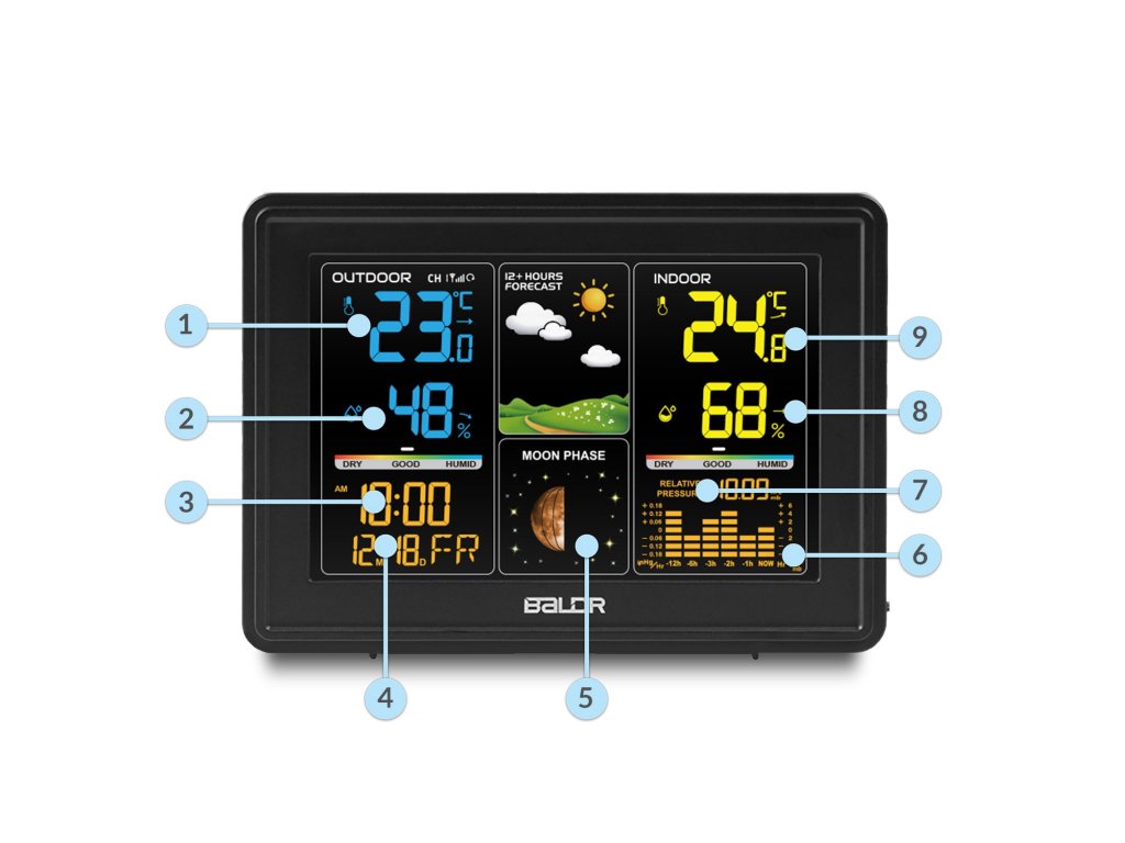 - Az időjárás-állomás folyamatosan méri a hőmérsékletet, a nyomást és a páratartalmat, elemzi és időjárás-előrejelzést ad a következő 12-24 órára.
