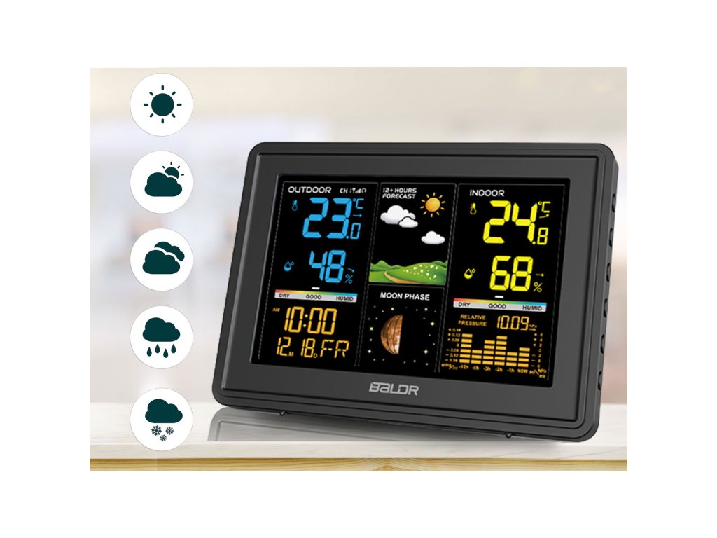 Alkalmas naptárként, óraként és ébresztőóraként is. Ezzel a készülékkel az időjárásról és a hónap fázisairól szóló információk kéznél vannak!