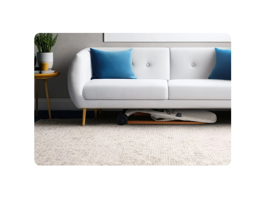 A hintaszék egy mozdulattal laposra hajtogatható az oldalsó gombok segítségével, helyet takarítva meg és könnyen tárolható az ágy alatt vagy a szekrényben.