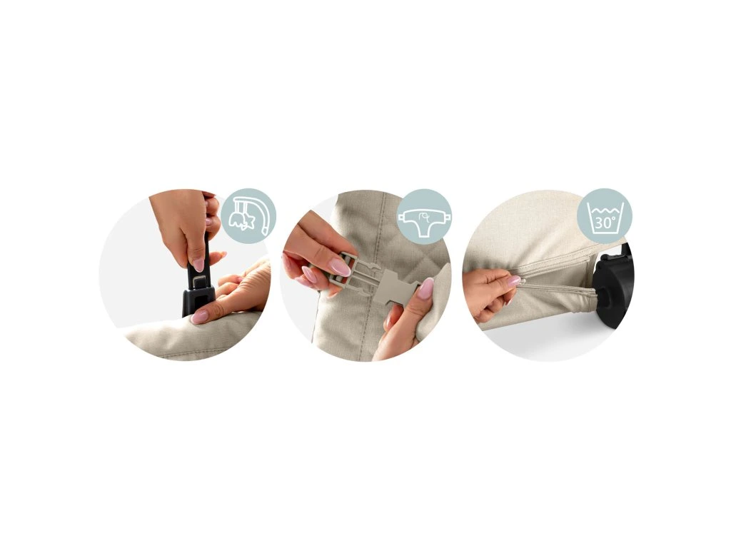 - - egy mozdulattal feltehető vagy levehető.A teljes huzat könnyen lecsatolható és kézzel mosható,