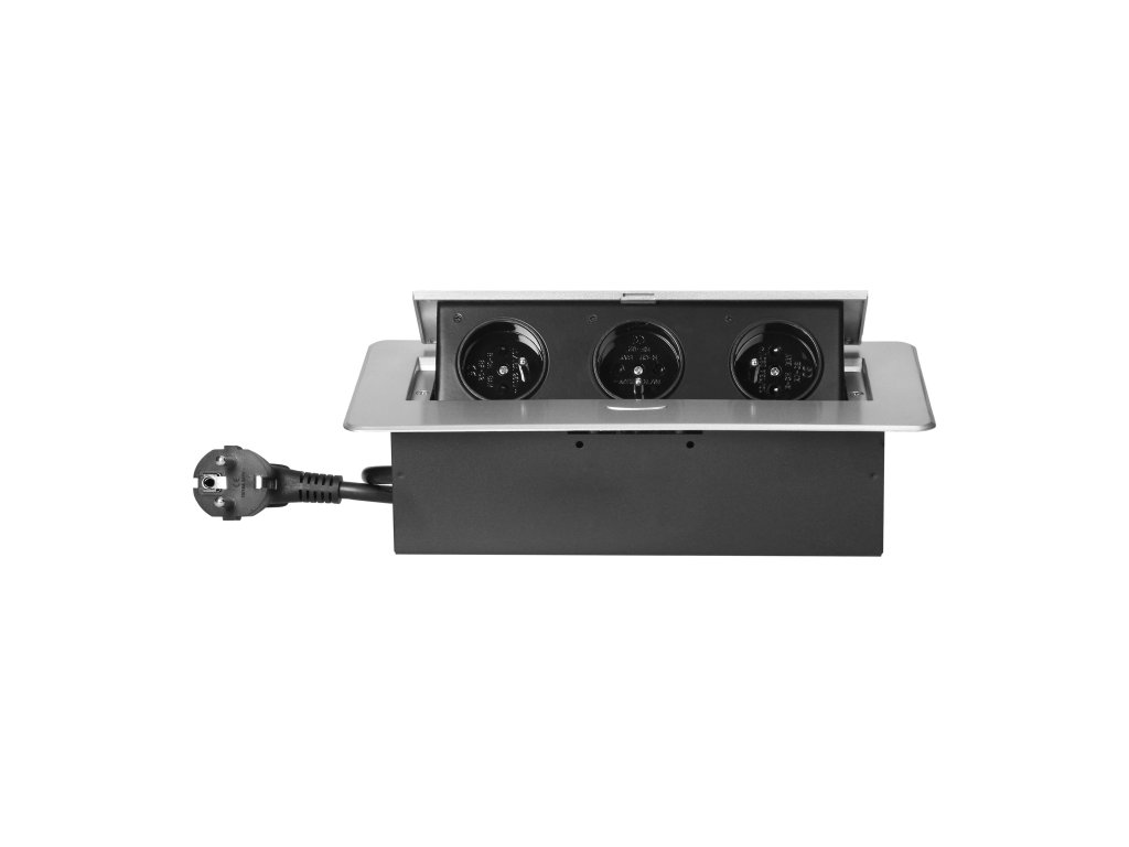 Beépíthető bútorba szerelhető aljzat, 3x2P+E, ezüst