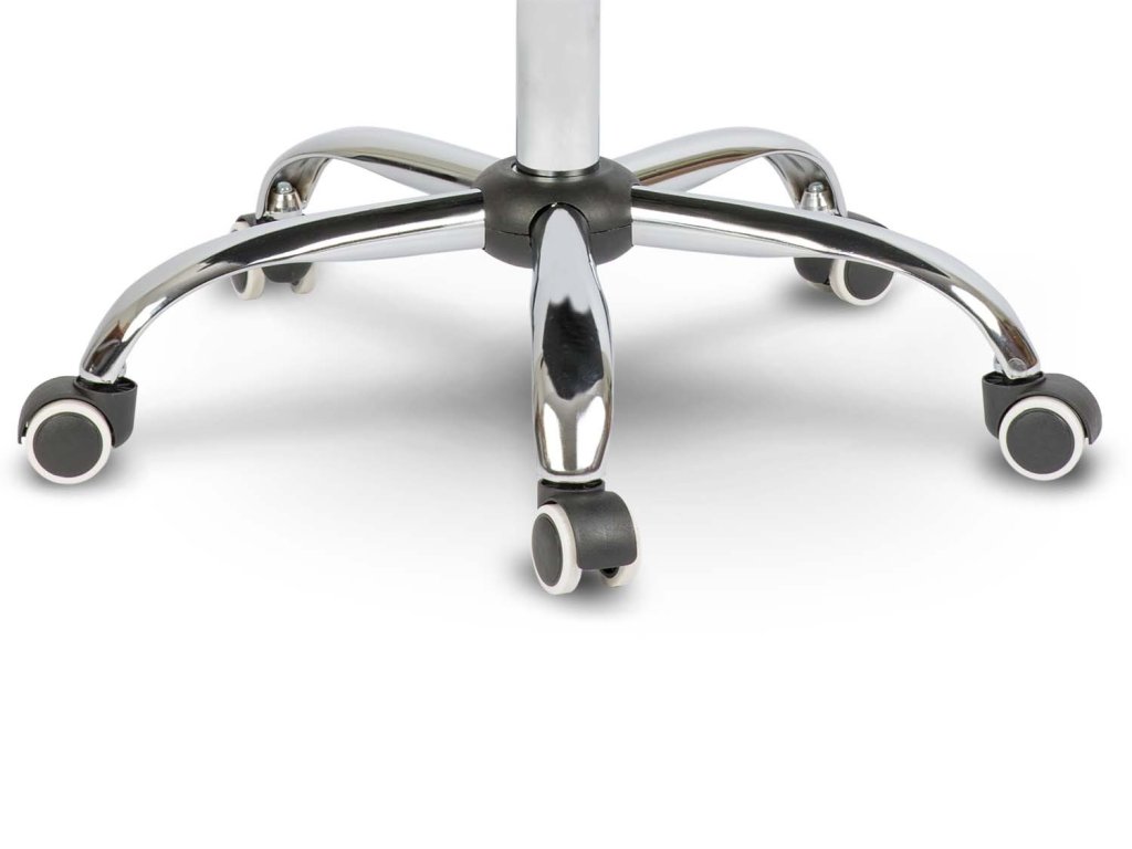 - A szék ötlábú talapzata dupla görgőkkel van felszerelve .Ez lehetővé teszi agyors és szabad manőverezést anélkül, hogy állandóan fel kellene állnia és meg kellene fordulnia.