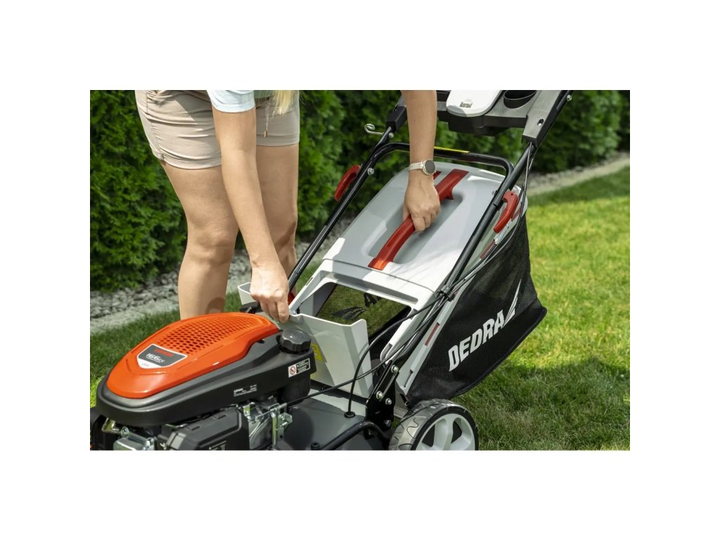 A DEDRA DED8724-46L benzines fűnyíró 46 cm vágásszélességgel, hajtás- és sebességszabályozással egy kisebb és közepes méretű gyepek nyírására és ápolására tervezett gép.