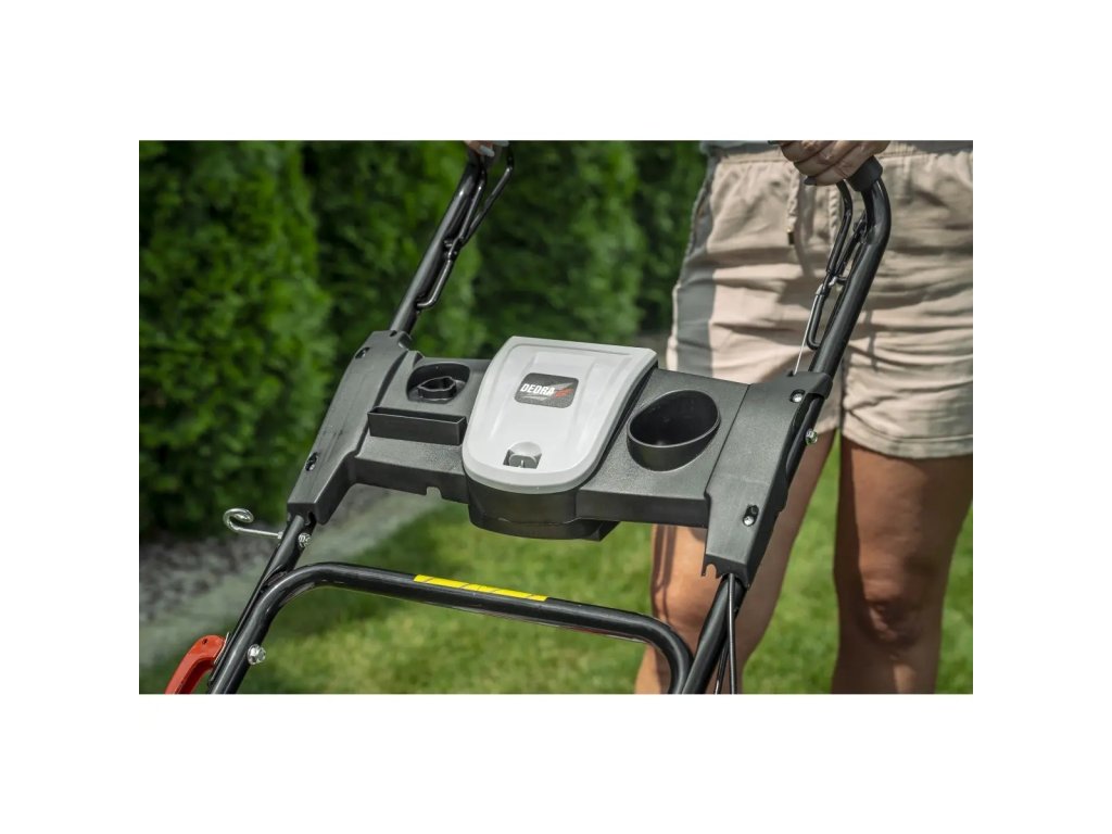 Avágási magasság központilag 8 fokozatban állítható (25-75 mm).A DED8724-46L benzinmotoros fűnyíró hajtással és sebességszabályozással mulcsozó/zúzalékoló funkcióval rendelkezik, amely csökkenti a fű mennyiségét. A lehajtható fogantyú és a műanyag felső borítású hálós kosár megkönnyíti a tárolást és a szállítást.